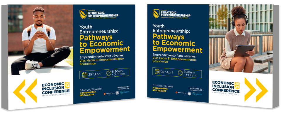 The Service Shop Marketing Agency developed a comprehensive engagement campaign to promote the Economic Inclusion Conference at Coppin State University (EICAC2024) held in April 2024. Our team of strategists and creatives crafted a unified brand identity using compelling visuals and messaging that resonated with target audiences. This effectively highlighted EICAC's significance and its impact on fostering equitable economic development.