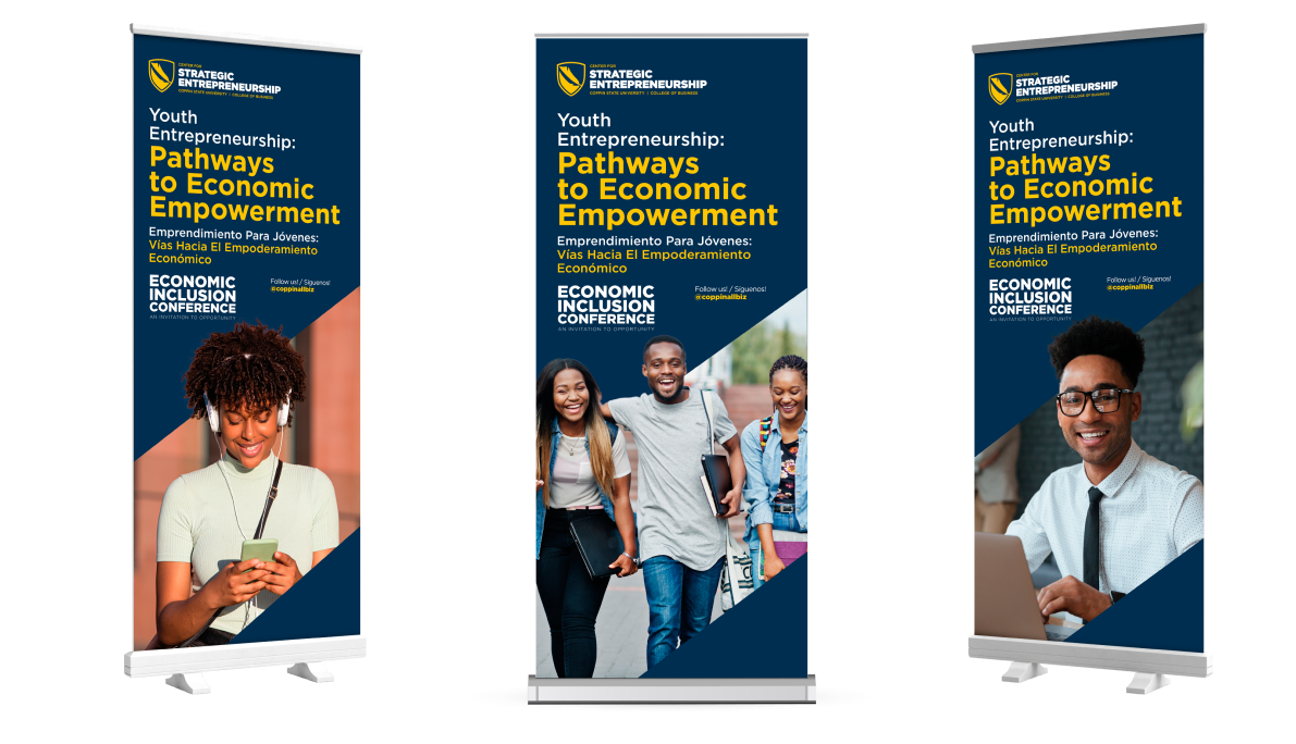 Our team crafted a modern, minimalist, and versatile brand identity for the conference. The logo seamlessly integrates the conference name, slogan, and year, allowing for easy adaptation in future iterations. We leveraged Coppin State University / Center for Strategic Entrepreneurship's established color palette to ensure brand consistency across all campaign assets.